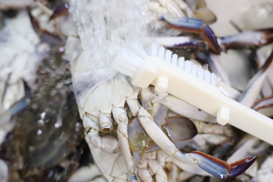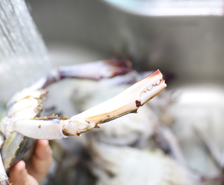 꽃게 손질은 집게 다리의 뾰족한 부분을 가위로 잘라준다.